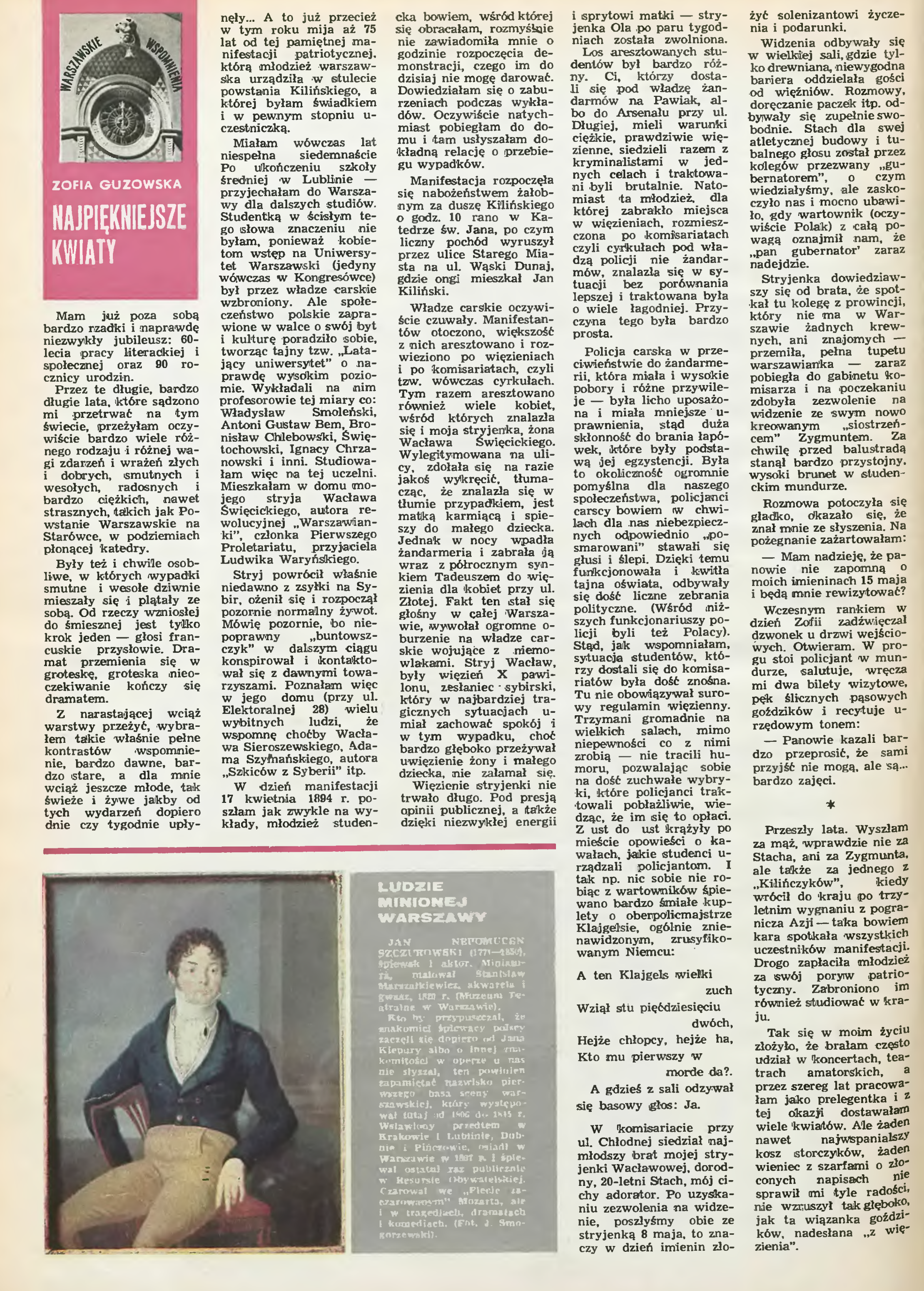 Warszawskie wspomnienia. Najpiękniejsze kwiaty [w:] "Stolica" 1969 nr 25 (1124), s. 16.