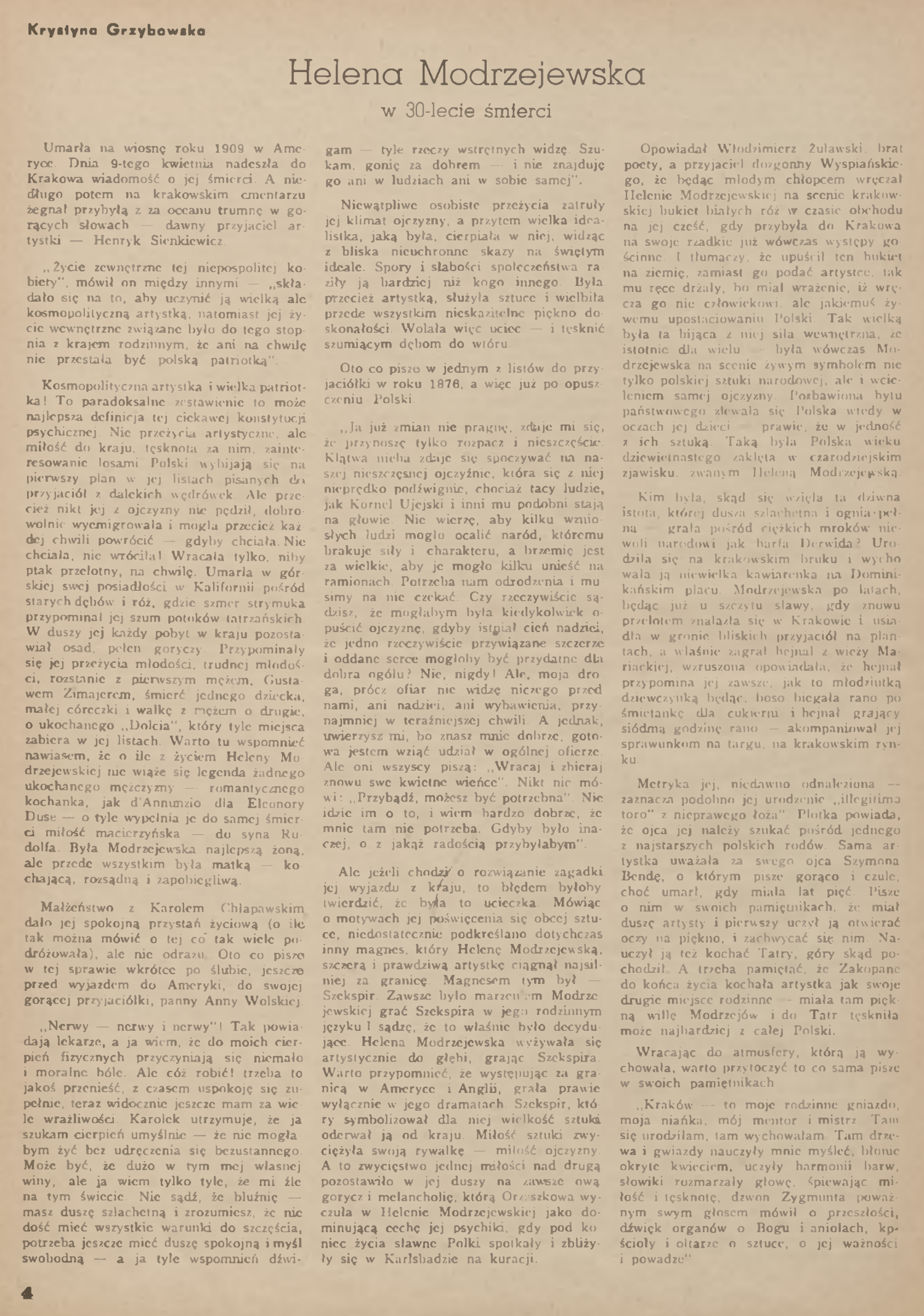 TEKSTY METATEATRALNE > Helena Modrzejewska w 30-lecie śmierci